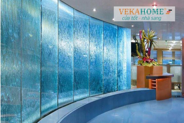 Kính ốp tường phòng khách, phòng ngủ: Kính cường lực màu được dùng để ốp tường thay thế cho sơn hoặc gạch ốp tường. Với bề mặt sáng bóng, nhẵn mịn và màu sắc đa dạng, kính ốp tường phòng khách, phòng ngủ tạo ra không gian hiện đại, dễ lau chùi và thẩm mỹ cao. Ngoài ra, kính ốp tường còn có khả năng chống thấm nước, chống ẩm mốc, phù hợp cho các khu vực có độ ẩm cao như phòng tắm hoặc nhà bếp.
