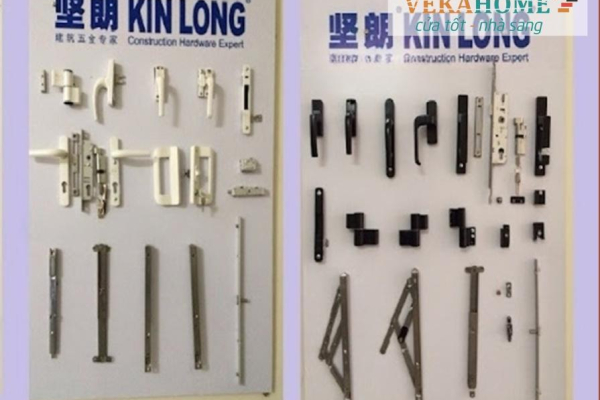 Cửa nhựa uPVC: Đối với cửa nhựa uPVC, phụ kiện Kinlong cung cấp các giải pháp đồng bộ như bản lề, khóa đa điểm, tay nắm và chốt an toàn. Các phụ kiện này được thiết kế để phù hợp với đặc tính của cửa nhựa, giúp tăng cường độ kín khít, cách âm, cách nhiệt và nâng cao tuổi thọ của cửa. Với cửa nhựa uPVC, các loại khóa đa điểm của Kinlong không chỉ giúp cửa chắc chắn hơn mà còn ngăn ngừa tình trạng cạy phá, đảm bảo an ninh cho ngôi nhà và văn phòng. Phụ kiện Kinlong còn có khả năng chịu được tác động của thời tiết khắc nghiệt, không bị giòn vỡ dưới tác động của nhiệt độ cao.