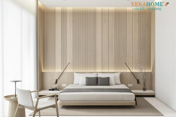 Kết hợp màu với chất liệu tự nhiên: Các màu trung tính như trắng, be, xám nhạt khi đi cùng chất liệu như gỗ, tre mây, linen hoặc vải thô sẽ mang lại cảm giác ấm áp, gần gũi với thiên nhiên. Đây là xu hướng rất được ưa chuộng trong các thiết kế nội thất hiện đại và eco-living. Kiểu phối này đặc biệt hiệu quả trong việc tạo không gian ngủ dễ chịu mà vẫn rất thẩm mỹ.